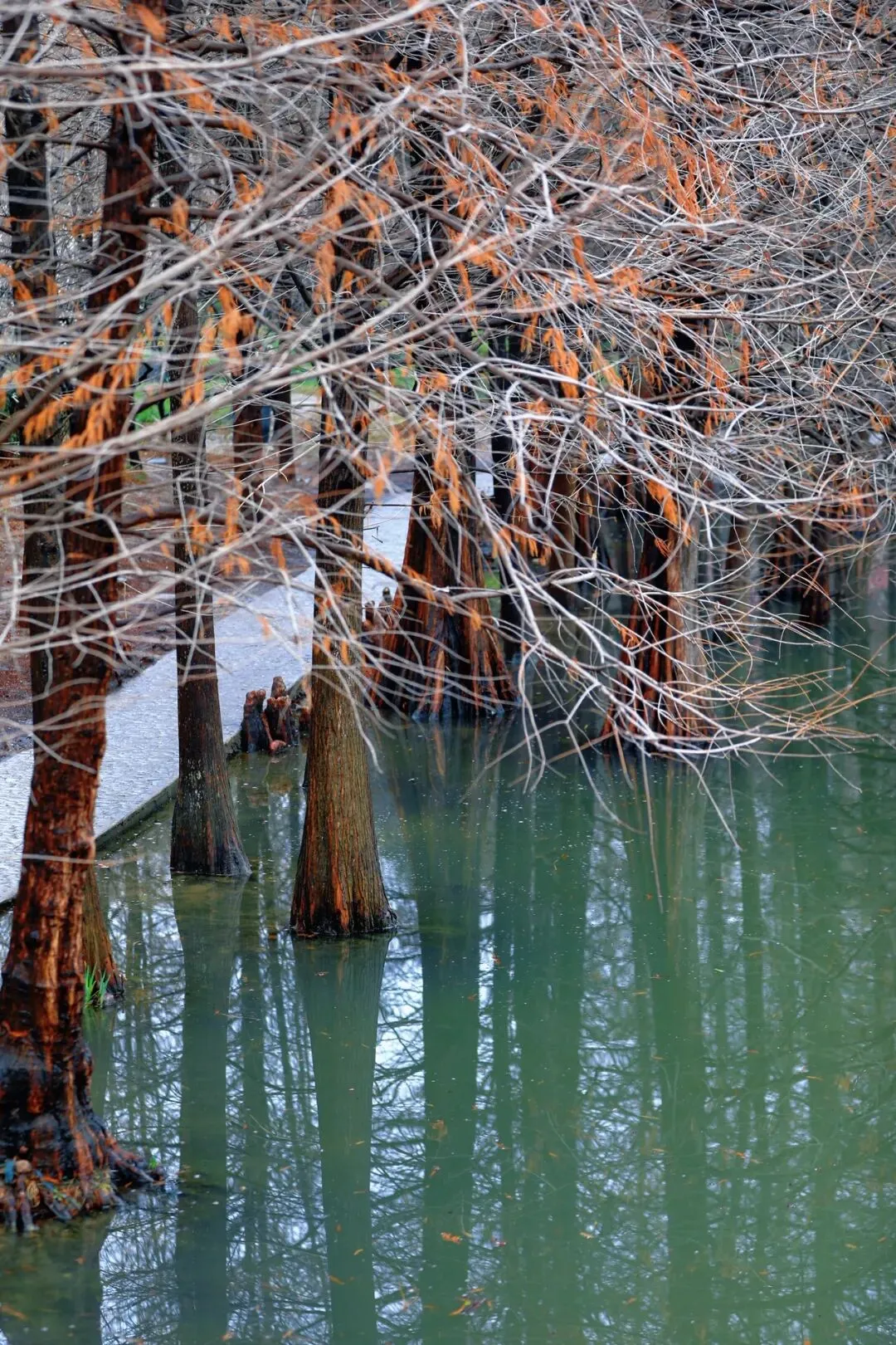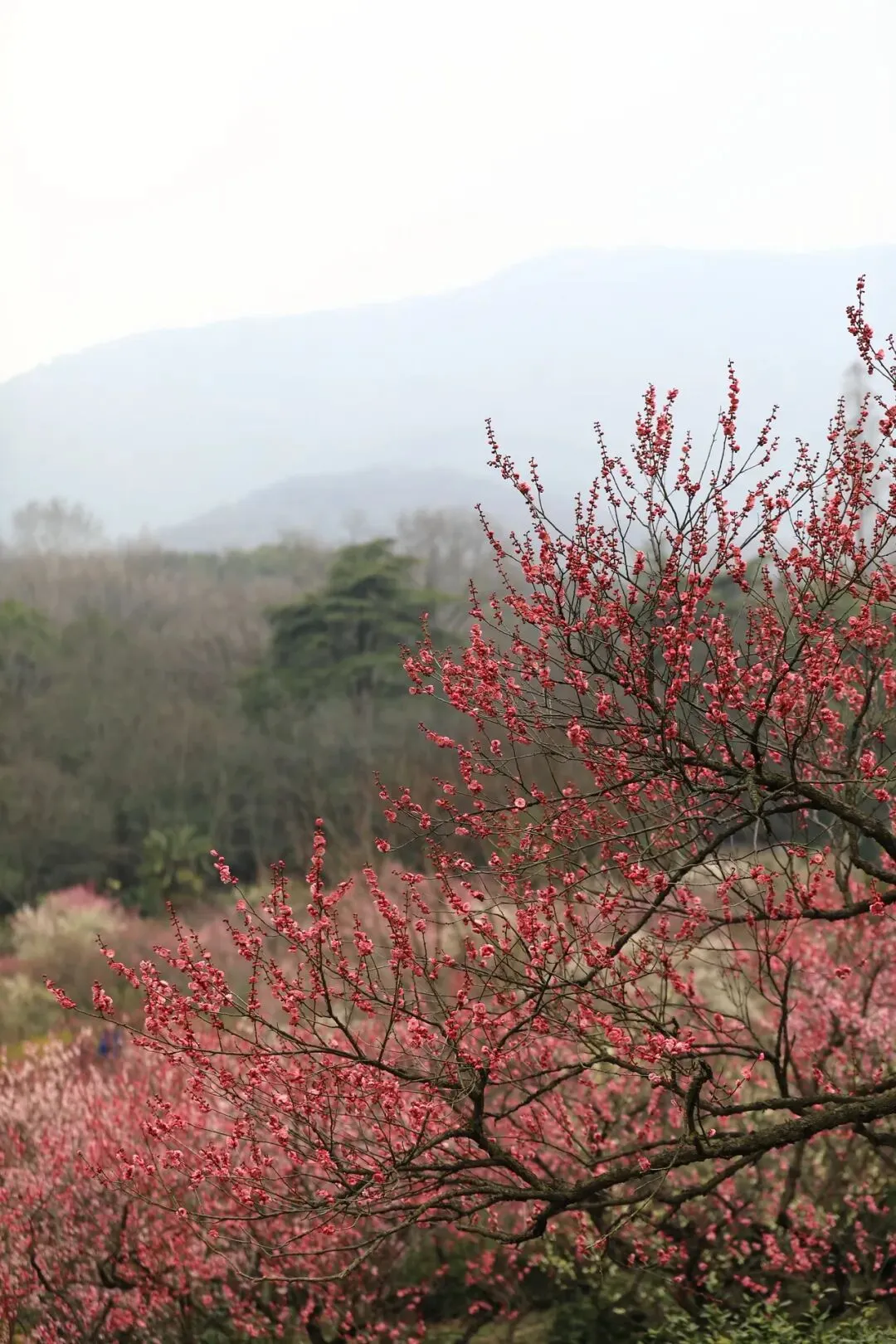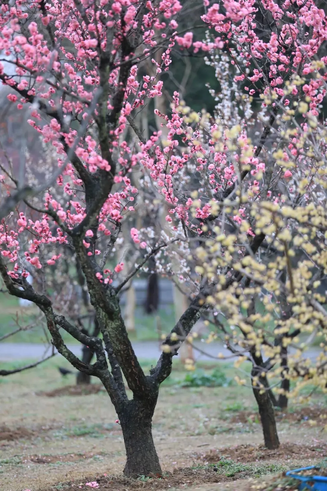 2. 香雪海:绿萼梅、红梅、腊梅交互映衬;
