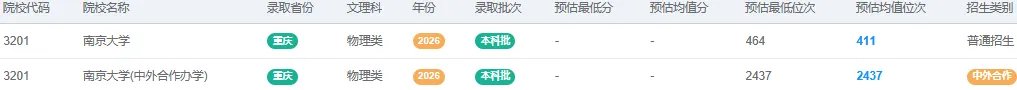 ##南京大学 ,##2025年重庆高考,##专业录取分
