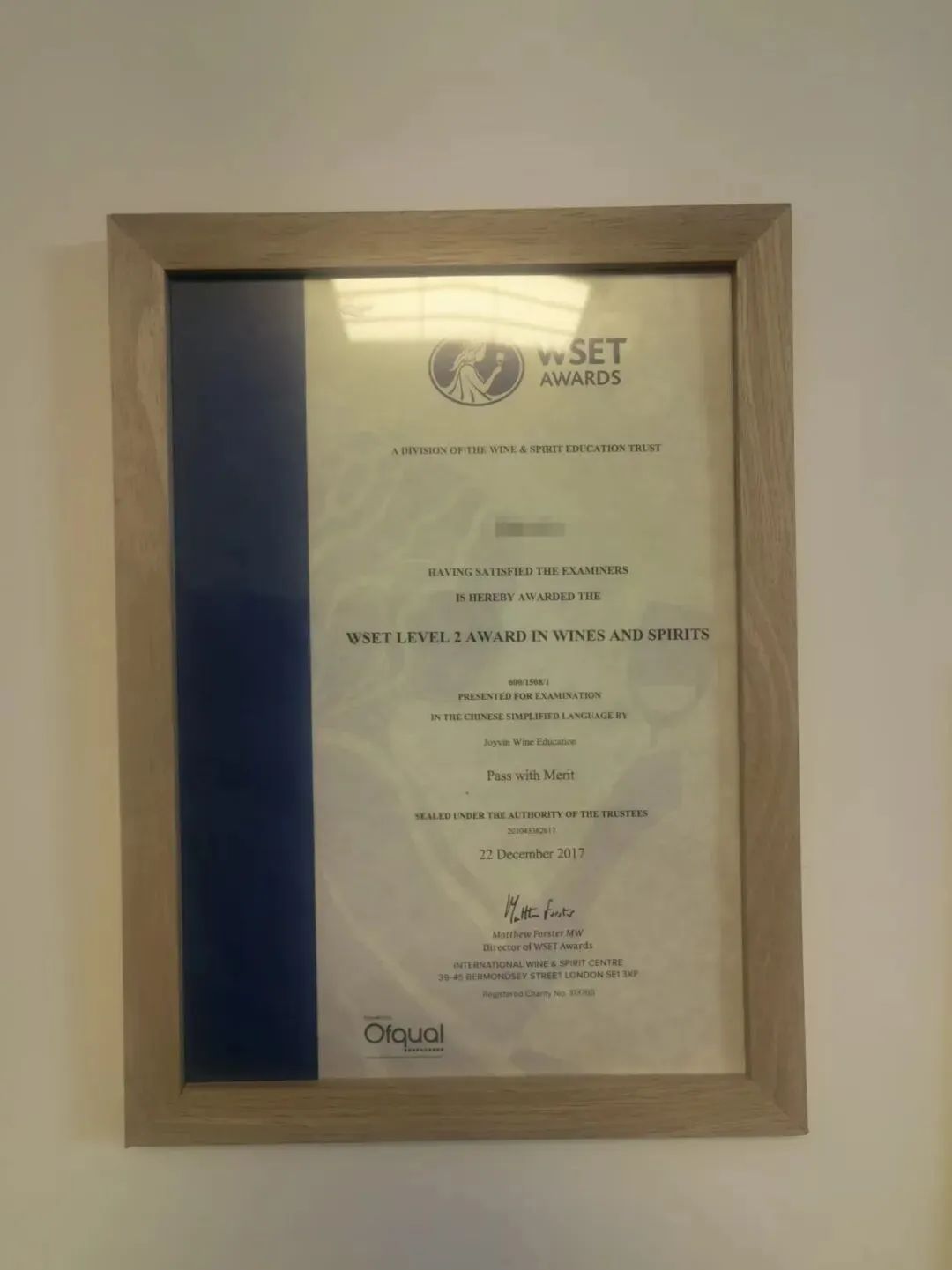 持有葡萄酒wset2级证书