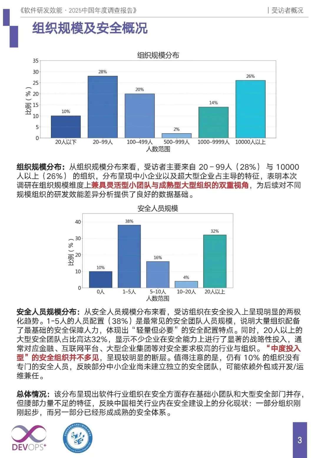 组织规模:呈现两极化,20-99 人中小企业(28%)与 10000 人以上超大型企业(26%)为主体,前者重效率灵活性,后者靠标准化提效能。