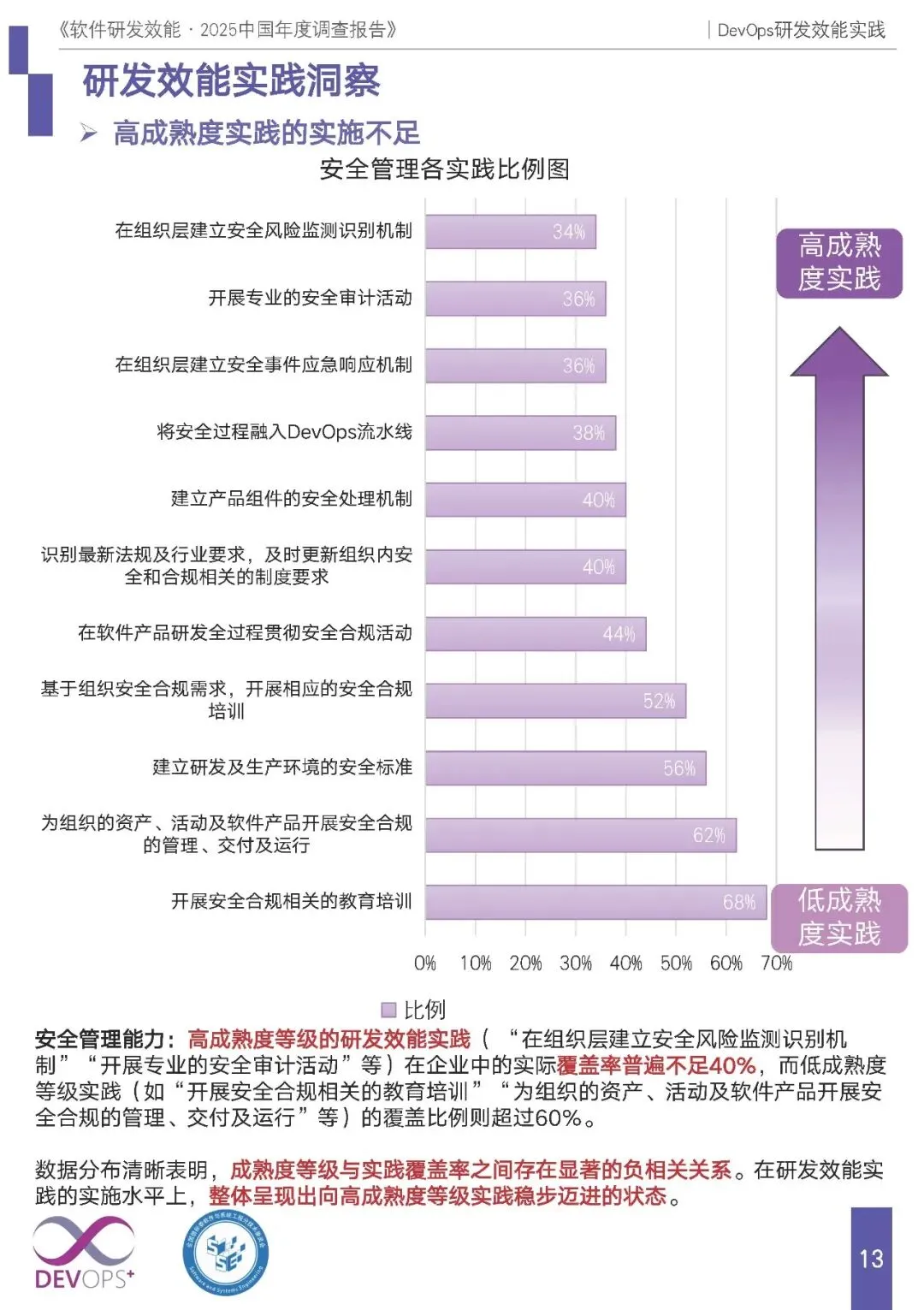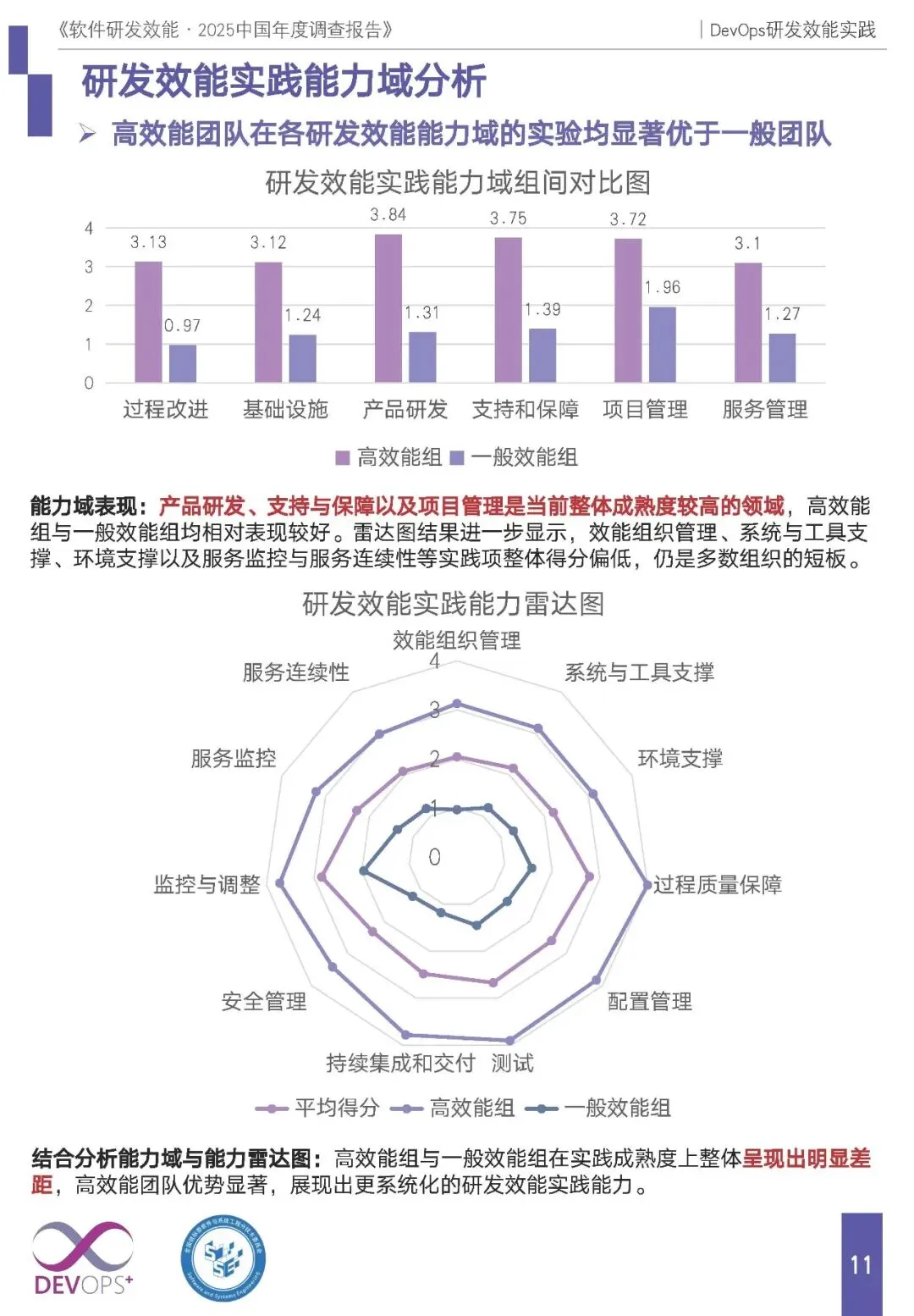 三、研发效能实践:体系化初成,高成熟度实践与部分能力域仍为短板