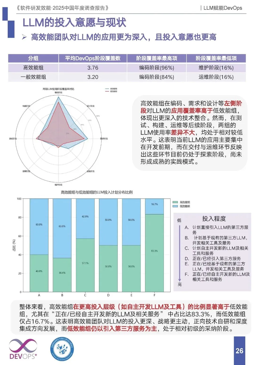七、LLM 赋能 DevOps:应用集中于研发前期,投入与效果呈显著梯队差异