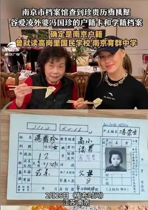 近日,南京市档案馆传来重磅消息:谷爱凌外婆冯国珍的户籍卡与学籍档案,找到了!