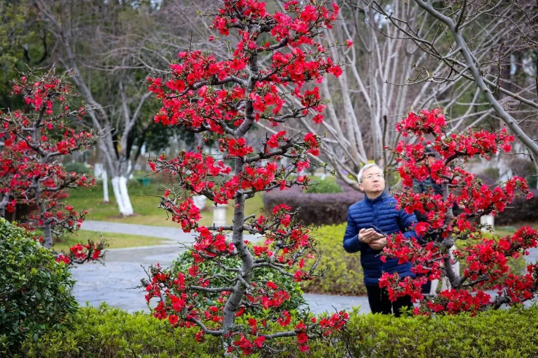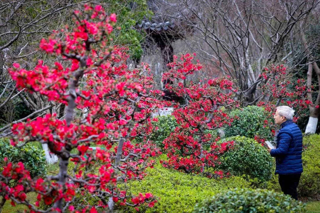 报春海棠“龙形一品香”、长寿冠海棠、贴梗海棠迎来全面盛花期,步入最佳观赏时段。园内繁花似锦、香气清雅,嫣红花朵灿若云霞,浓浓春意扑面而来。