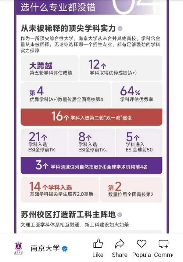 ▲ 南京大学官宣第五轮学科评估成绩