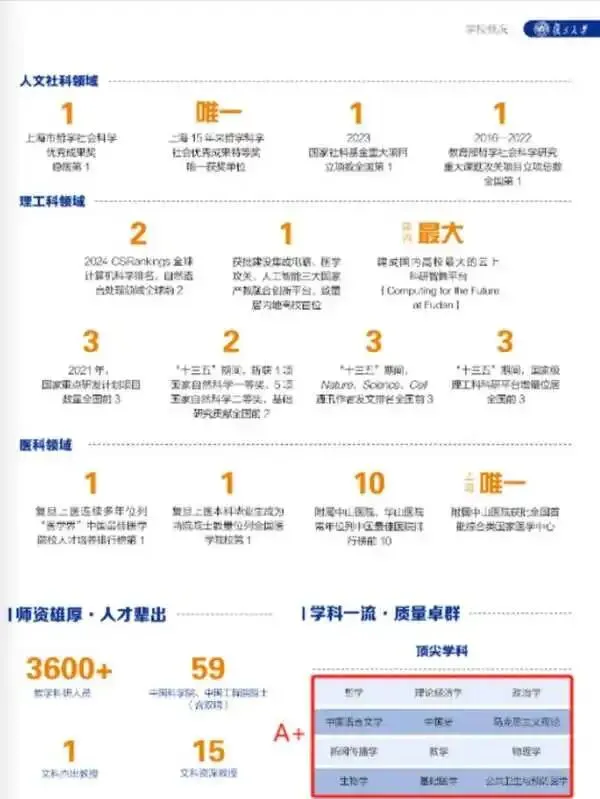 复旦大学 招生宣传中委婉官宣了 12 A+ 具体学科,以「顶尖学科」字样代替了 A+ 称呼。