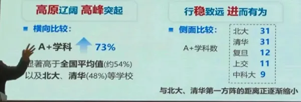 本轮一洗耻辱,校方官宣斩获 12 枚 A+ 学科,数量位居全国第四,学科评估优秀率达 64%。