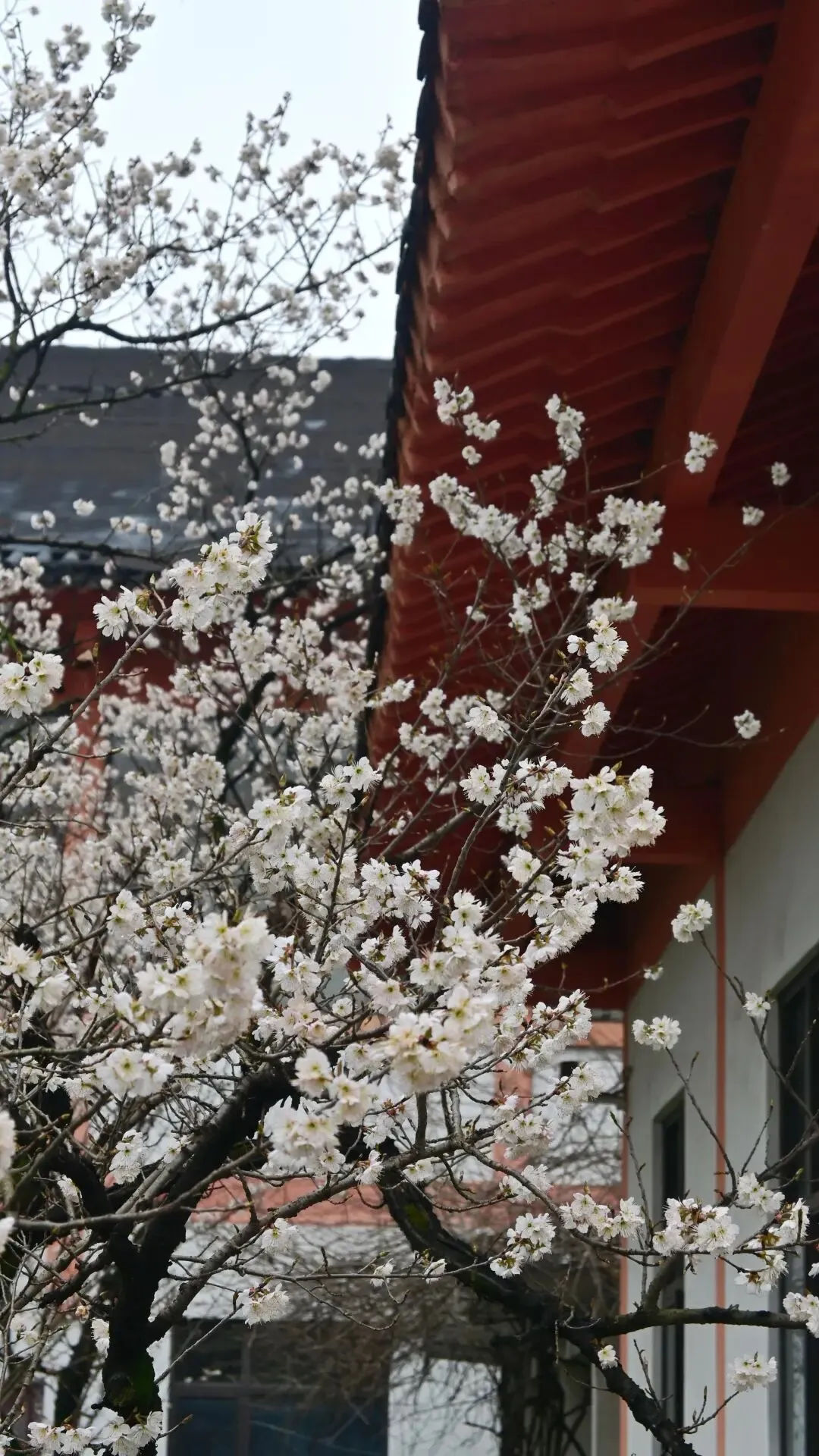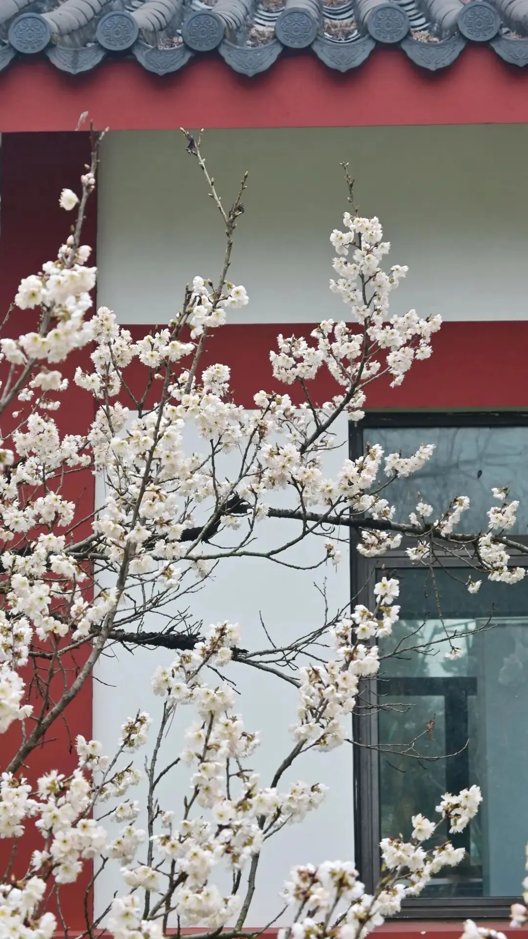 南京古建樱桃花盛开!!乘地铁1号线直达的白色秘境,属于南京的早樱已是盛花期!!不用到处跑了,这里就是这段时间的出片好去处!!