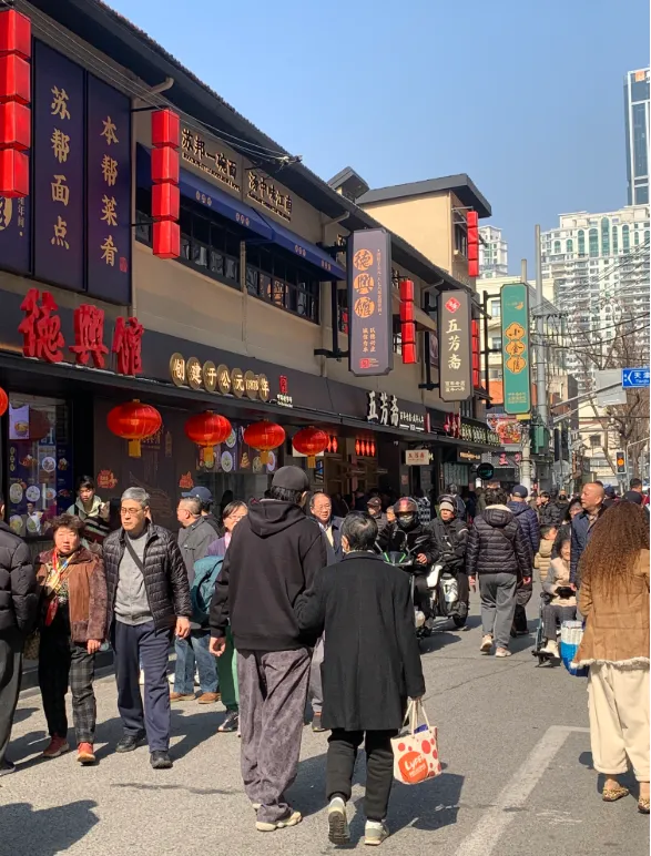 老字号底蕴则成为留住人心的核心支撑。作为全国首屈一指的老字号聚集地,南京路50余家老字号承载着上海人的集体记忆。五年间,三阳南货、邵万生等老字号重装升级,化身“新国潮”;2026年新春前夕,云南南路老字号美食街以“春启新巷”之名重聚南京路支马路,十余家老字号的集体入驻,将“城市烟火”转化为消费升级资产,让南京路成为市民与游客寻觅年味的核心场景,新春期间,美食街上客流涌动、一座难求。