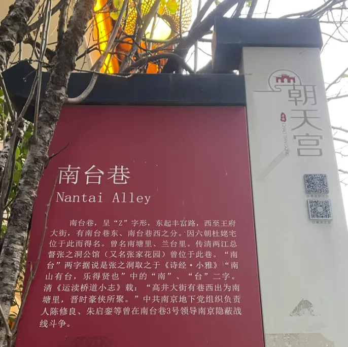传闻清代两江总督张之洞的公馆(亦称张家花园)曾建于此巷,“南台”二字,据说正是张之洞取自《诗经·小雅》“南山有台,乐得贤也”中“南”与“台”二字。