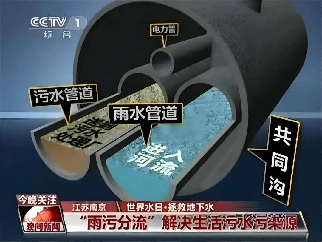 当时南京的城市排水体制为“截流式合流制”,也就是说雨量不大时,雨水和污水一起通过截流干管进入污水处理厂;雨量较大时,超过干管负荷的混合污水将流入溢流管道排入河流。因此南京要做的雨污分流,就是让雨污分道扬镳,各用一条管道输送:雨水直接排入河道,污水则一路奔向处理厂。