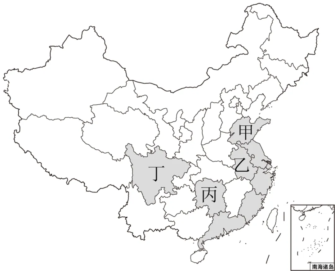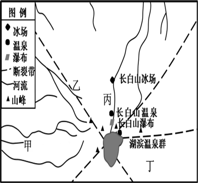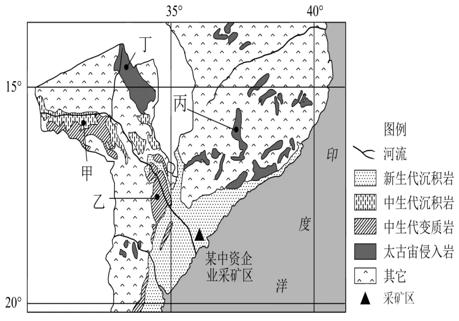 (1)甲、乙、丙、丁四地中,哪一处最有可能是该采矿区成矿物质的来源地,并说明理由。