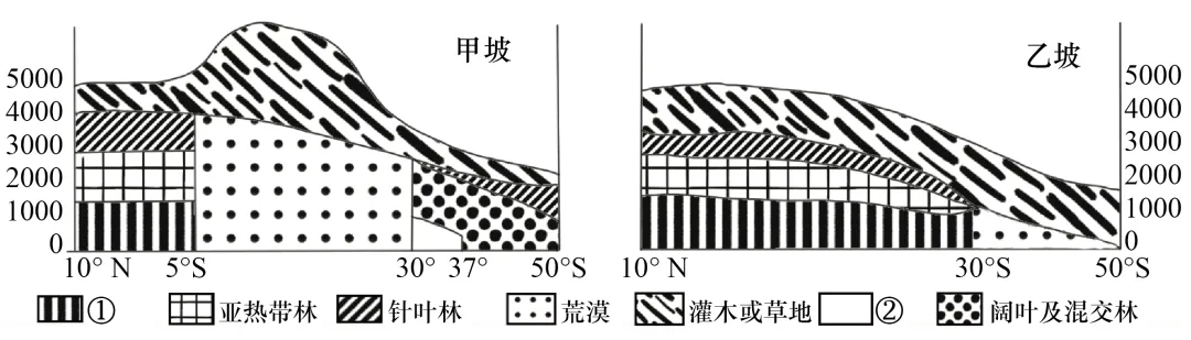 下图示意安第斯山脉两坡不同地带垂直景观略图。据此完成下面小题。