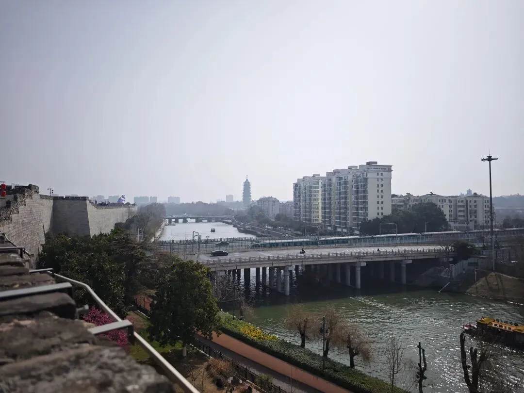 阅江楼上望长江大桥与外秦淮河