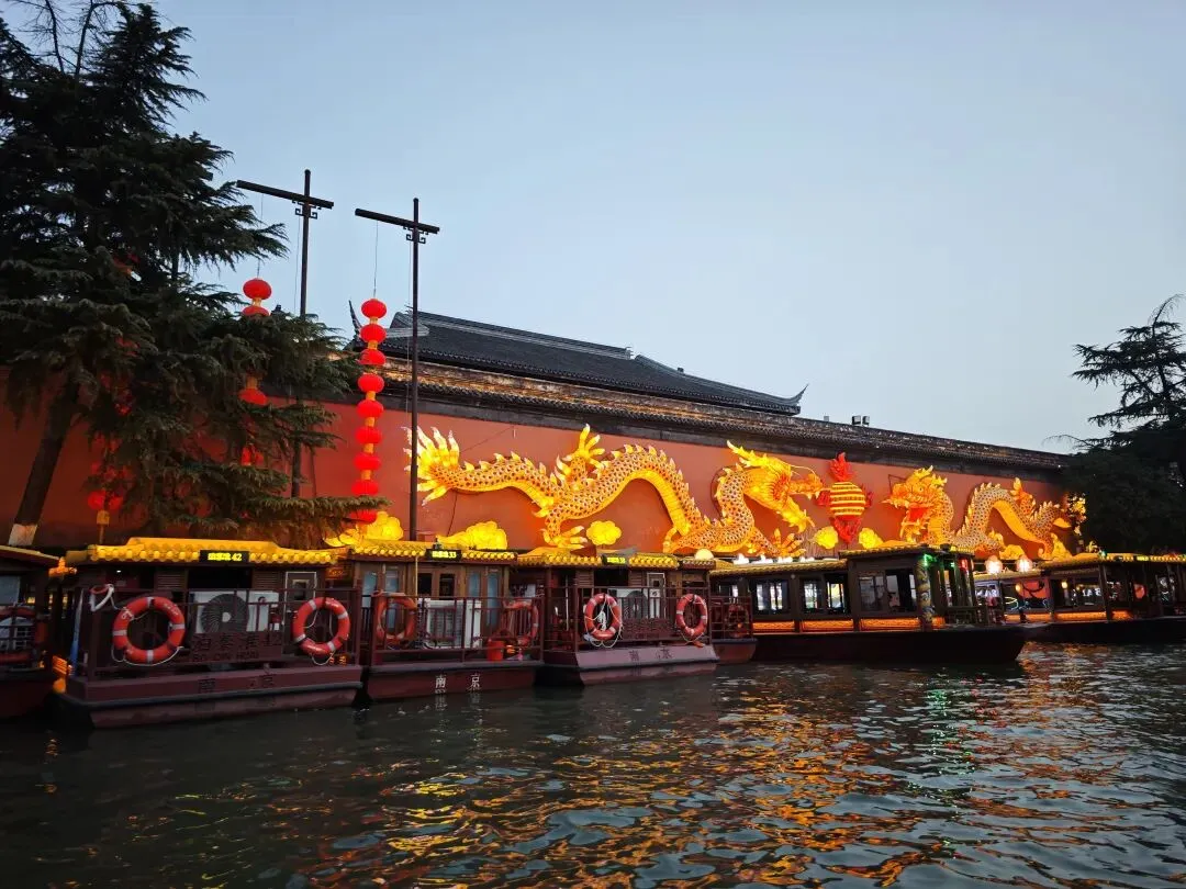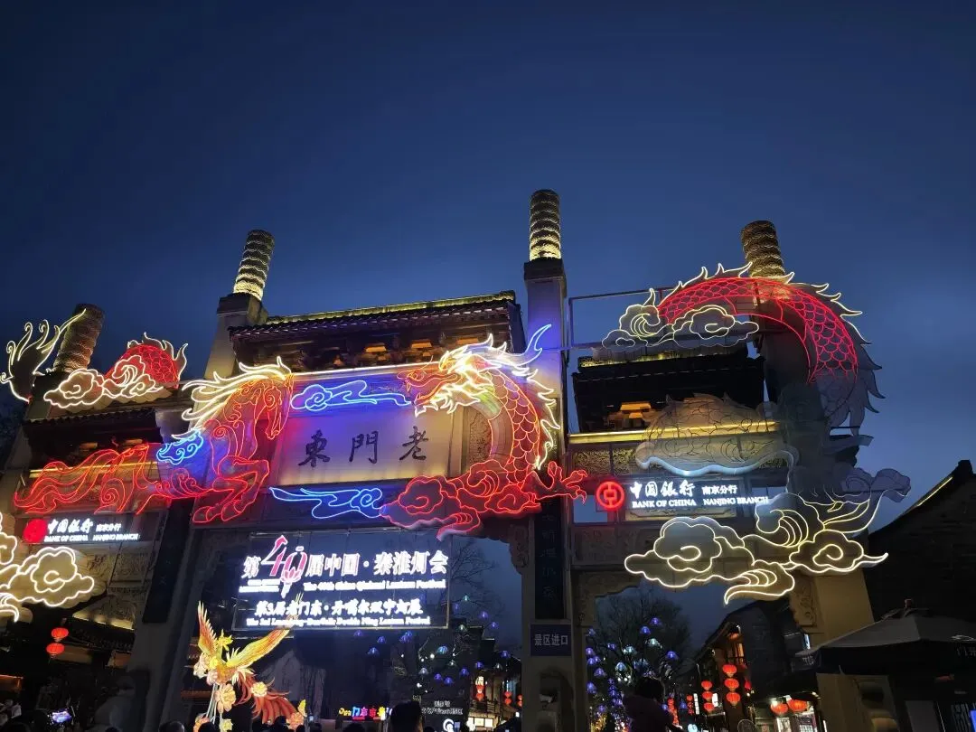 2.秦淮河,夫子庙。春节期间灯会,晚上游人比白天多,要提前预约入场。夫子庙的门票、秦淮河的游船票,晚上比白天价格高。我们下午4点左右到达,将车停在附近酒店的地下停车场,还算顺利。