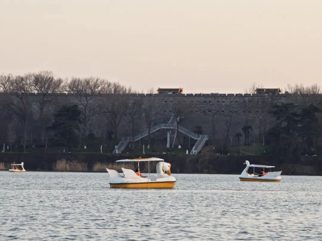 荡舟玄武湖,岸边是明城墙
