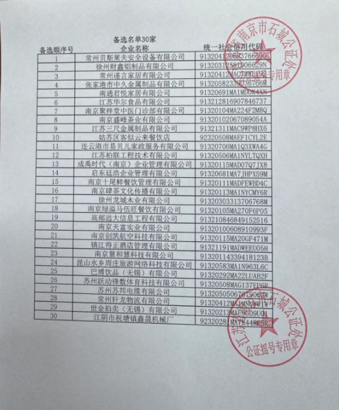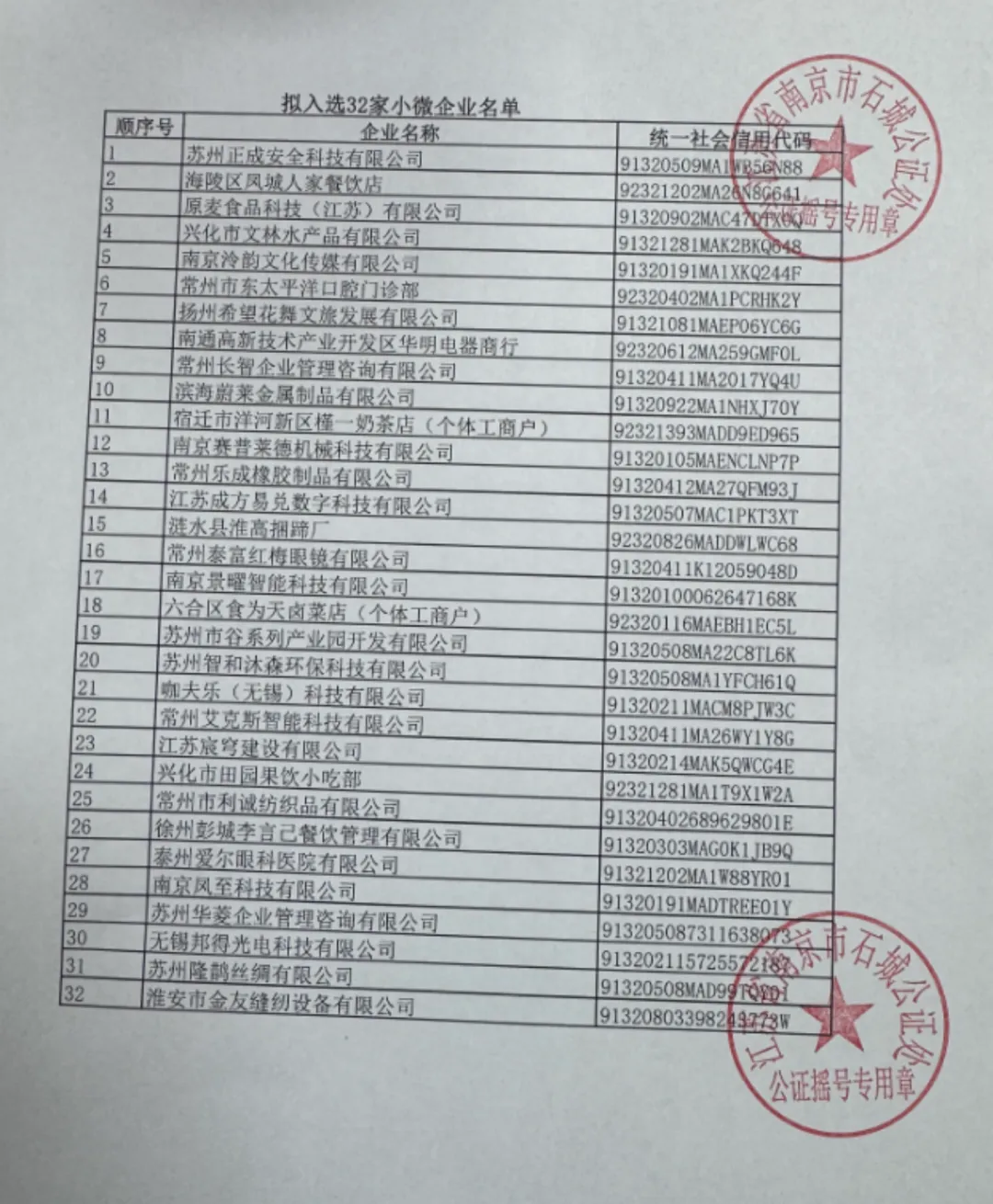 2月27日14时,2026江苏省城市足球联赛(“苏超”)小微企业商务遴选抽签摇号在南京市石城公证处圆满举行。在全程公证监督下,32家拟中选企业、30家备选企业名单现场产生,即日起进入约10天的资格复核与公示环节,最终合作名单将在复核通过后正式公布。拟入选名单如下: