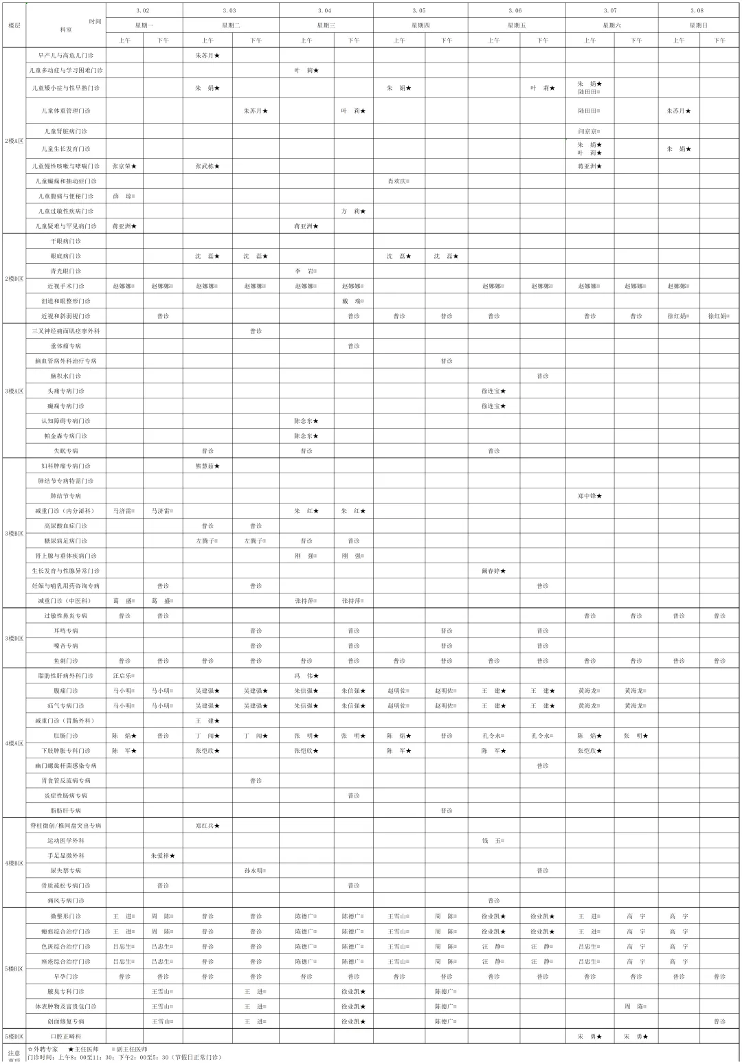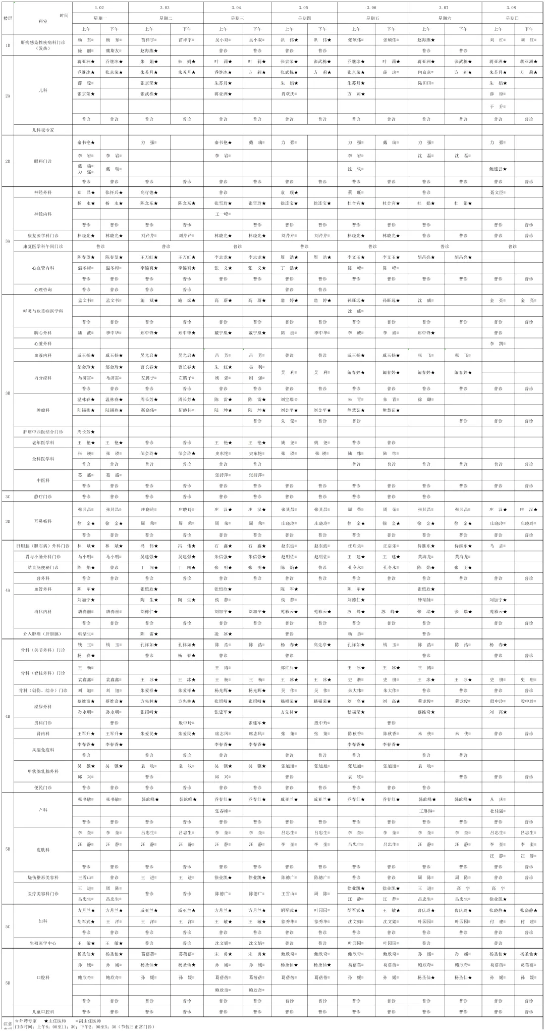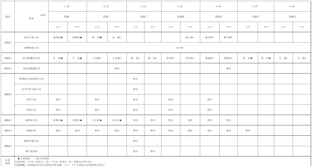为提高广大市民朋友们的就医体验,宿迁医院门诊部现将(03月2日-03月8日)门诊排班表向您公示。便于您根据自身情况,选择合适的医生、合适的时间就诊。