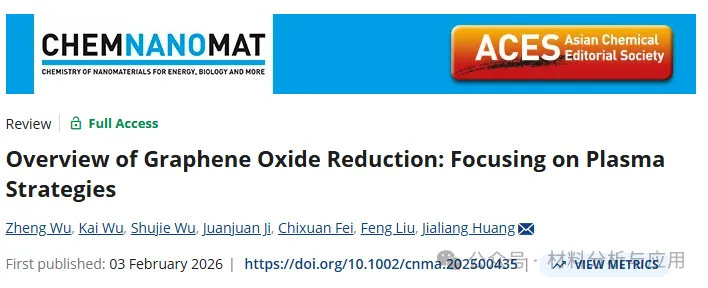 氧化石墨烯的还原是石墨烯工业应用的关键突破。传统化学和热处理方法常涉及危险试剂或高温操作,而微波和激光技术虽能实现快速整体加热和精密图案化,其基础机制仍存在局限。低温等离子体技术凭借其绿色、高效且可精确调控的特性,为解决这一难题提供了前景广阔的途径。本文,南京工业大学黄家良 副教授等在《CHEMNANOMAT》期刊发表名为“Overview of Graphene Oxide Reduction: Focusing on Plasma Strategies”的论文,研究提出系统综述了氧化石墨烯还原技术,重点聚焦等离子体策略,分析液相与气相等离子体机制,并从反应路径、还原效率及还原氧化石墨烯的结构-性能关系三个维度,对比了还原性与惰性气氛的差异。