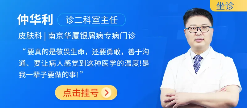希望帮助患者朋友得到更加科学、规范的治疗。需要的患者朋友请尽快在公众号留言申请,或点击公众号底部菜单。▲南京华厦银屑病挂号