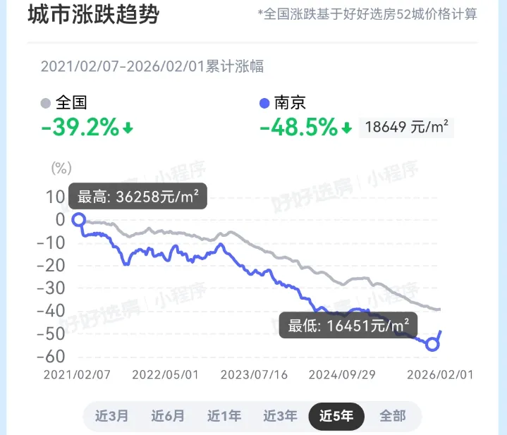 这样的跌幅与城市基本面严重脱节,这波领先全国的回升,正在让南京回归其该有的城市价值。