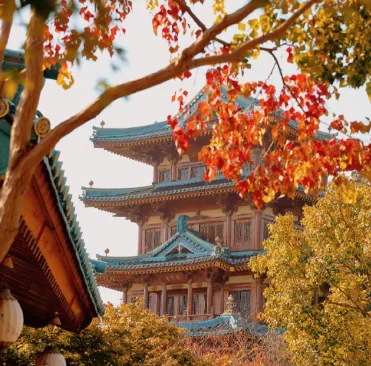 栖霞山风景区是中国四大赏枫胜地之一,树龄两百年以上的古枫树有 4000 余株,鸡爪槭、红枫、三角枫、黄连木等红叶树共有 15 万株之多。最佳观赏时间在 11 月中下旬,此时漫山红枫层林尽染,古寺红墙黛瓦与红叶相映成趣。建议从栖霞山北门进入,可以避开人流,拍摄古寺与红叶的经典画面。