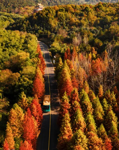 秋季是南京最美的季节之一,红叶和梧桐构成了五彩斑斓的画卷: