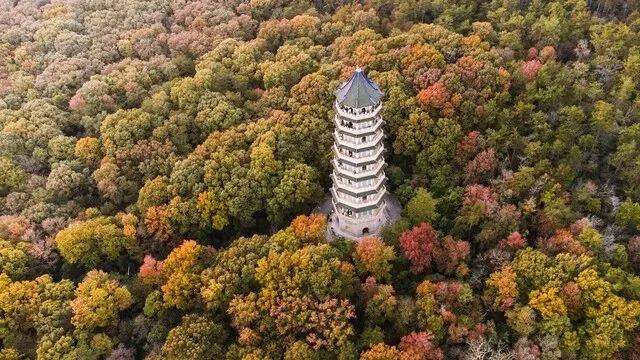 一圈梧桐环绕,像一条翡翠项链,绝美航拍视角