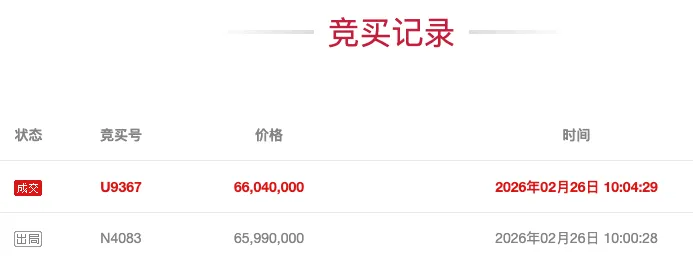 2026年1月:起拍价6599万元(以总价6604万成交)