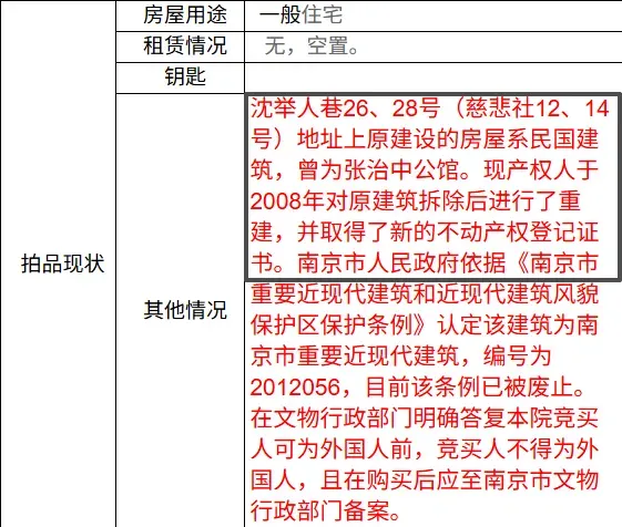 - 南京市人民政府依据《南京市重要近现代建筑和近现代建筑风貌保护区保护条例》,认定该建筑为南京市重要近现代建筑的条例,已被废止。