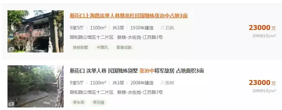 尤其在2018年,南京房产中介的口中,“新街口沈举人巷独栋民国别墅稀缺超大庭院值得珍藏”,其房价报价到达巅峰2.3亿元,在南京引起轰动。