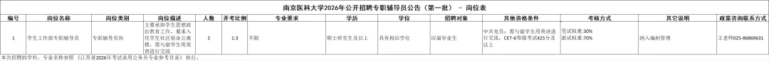 1.南京医科大学学生工作部负责回答此次招聘岗位咨询。