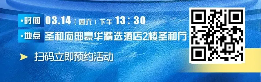 🔵时间:3月14日(周六)下午13:30🔵地点:圣和府邸豪华精选酒店 2楼圣和厅(南京市玄武区长江路300号)