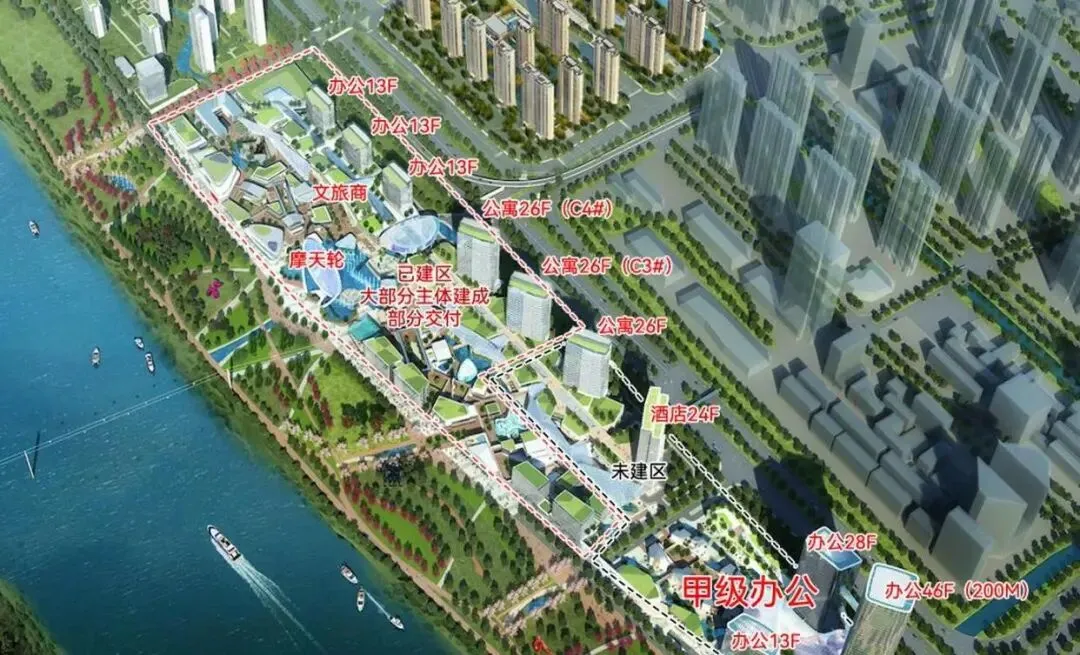 这个综合体里有甲级写字楼、W酒店等业态,两栋华寓中,C3楼早就在2004年交付使用,C4楼计划在2026年交付。园区里的巨大摩天轮,现在已经成了滨江区域的标志性建筑,很多人专门去打卡拍照。