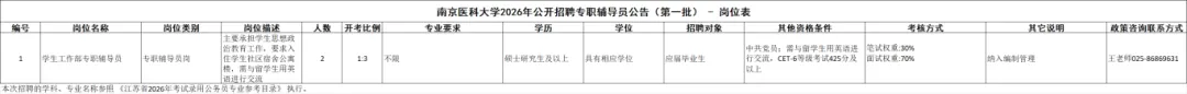 1.南京医科大学学生工作部负责回答此次招聘岗位咨询。