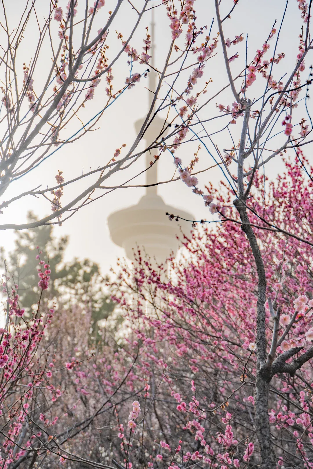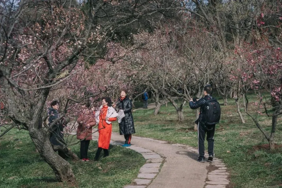 这梅山上的好景致不止是梅花,形形色色的赏梅人也自成一景,为春色盎然的山丘带来不一样的闲趣意味。登高远望,花海与古建筑相映,红墙映梅影,是独属于金陵的端庄与诗意。来这里,不必赶时间,顺着山路慢慢走,一抬头,就是一整个春天。