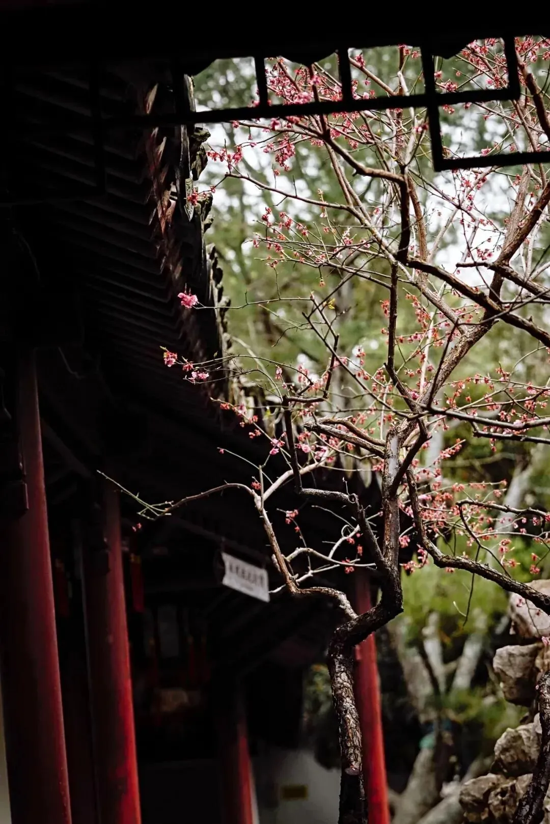 地方不大,却十分精致。访梅亭、问梅阁、寒香轩、曲廊环绕成景,白墙、花窗、回廊与梅花相映,把江南园林的含蓄之美藏在细节里。