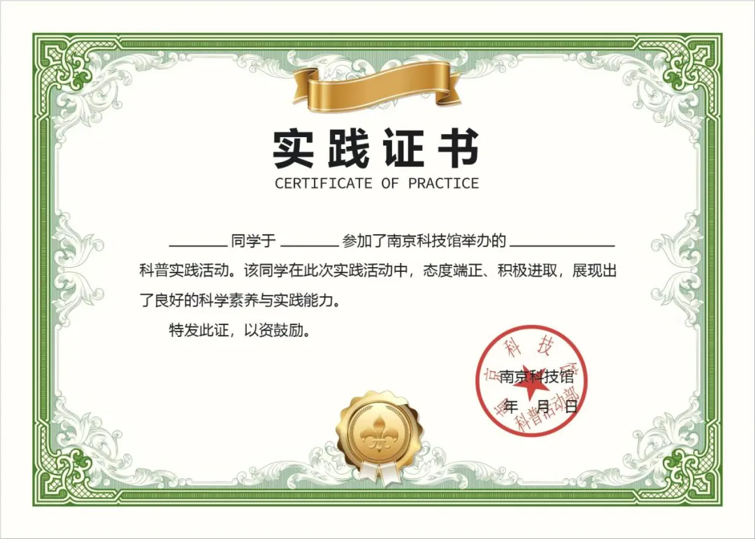 本活动可提供横幅拍照,活动结束后发放南京科技馆“红领巾寻访活动”专属证书。