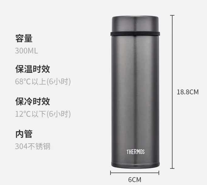 膳魔师 TJNC-300 保温杯,300ml 轻巧便携,304 不锈钢内胆安全健康。高真空锁温,6 小时保温≥68℃、保冷≤12℃。旋盖密封防漏,简约纯色高颜值,办公通勤、车载出行都合适。百年温控品质,一杯随行,温暖常伴。