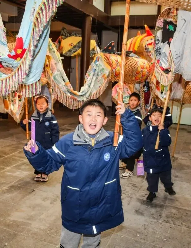 这个作品称作“百纳游龙”,由南京艺术学院策划,江苏省非物质文化遗产秦淮灯彩代表性传承人曹真荣和余杭竹编非遗传承人俞才根,以及全国多地爱好者参与的大型公共艺术作品。