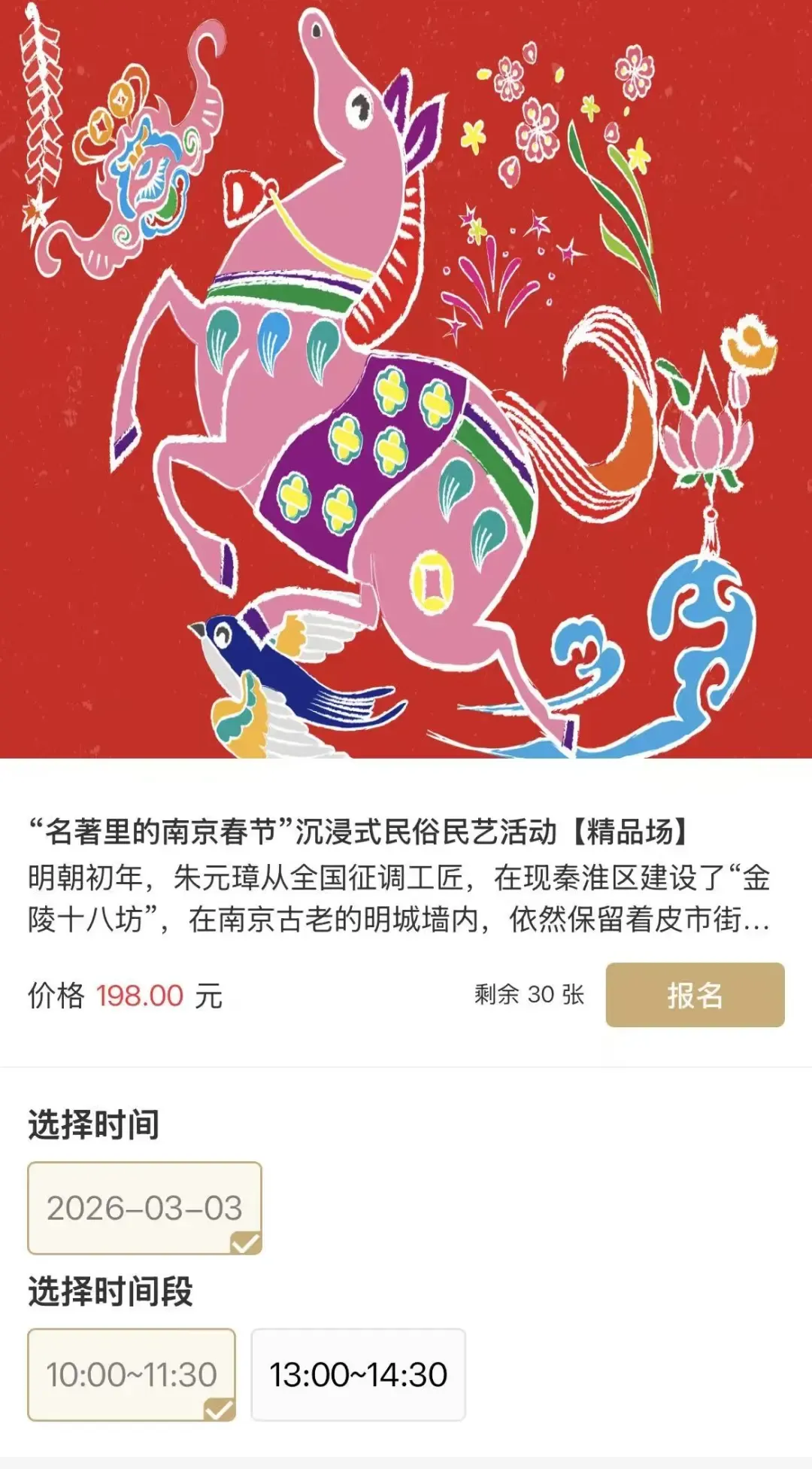活动后可自由参观“阅春 —— 丙午马年民俗民艺展”,200余件民俗文物、非遗精品近距离观赏,延续文化体验之旅,一趟行程,多重收获!