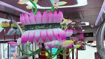车头挂着亭亭玉立的荷花灯,拉手和椅座间处处点缀着灯彩元素,一上车,就像一头扎进了秦淮灯会。