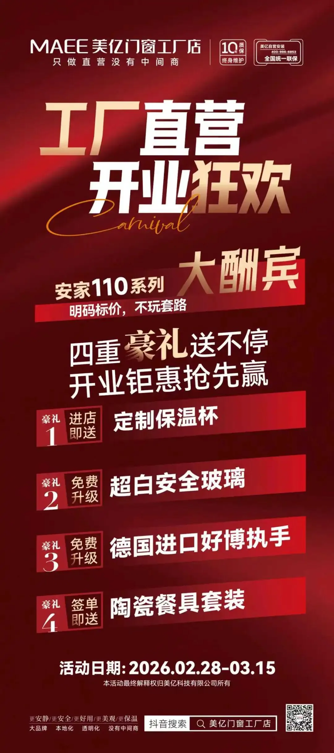 无需消费、不用预约,只要踏入美亿门窗南京店,就可免费领取美亿定制保温杯一个!质感在线、保温耐用,不管是日常通勤带热水,还是周末逛老门东、夫子庙时随身相伴,都能随时随地感受到这份贴心暖意,把开业的诚意直接揣回家