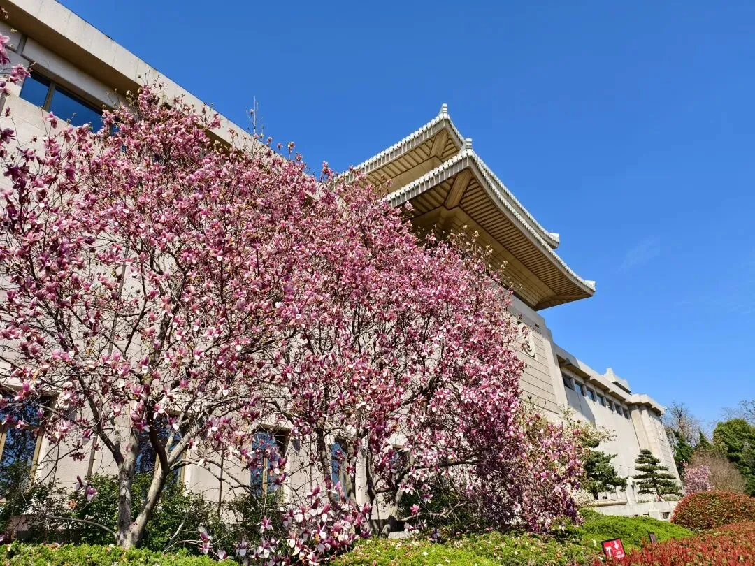 紫玉兰,白玉兰等花树高低错落,与湛蓝无云的天空相映,以素净而坚韧的姿态,在承载着历史记忆的土地上,在雨花台烈士纪念馆前,静静守护着这一段不朽的过往。