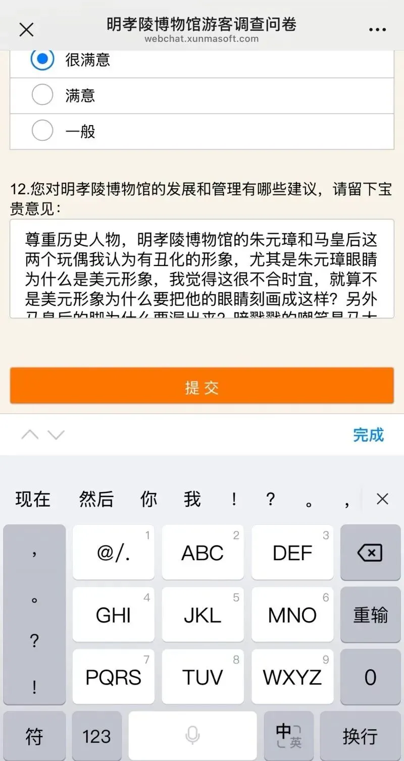 有游客以问卷调查的形式向馆方进行反馈。网络截图