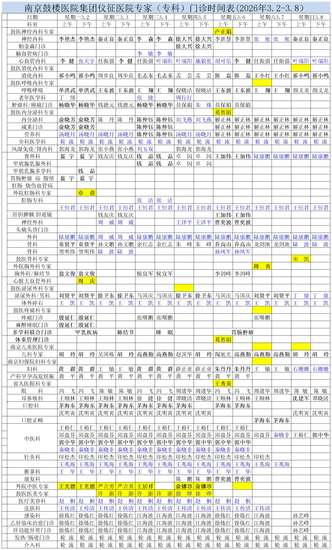 南京鼓楼医院集团仪征医院3月2日——3月8日门诊排班表