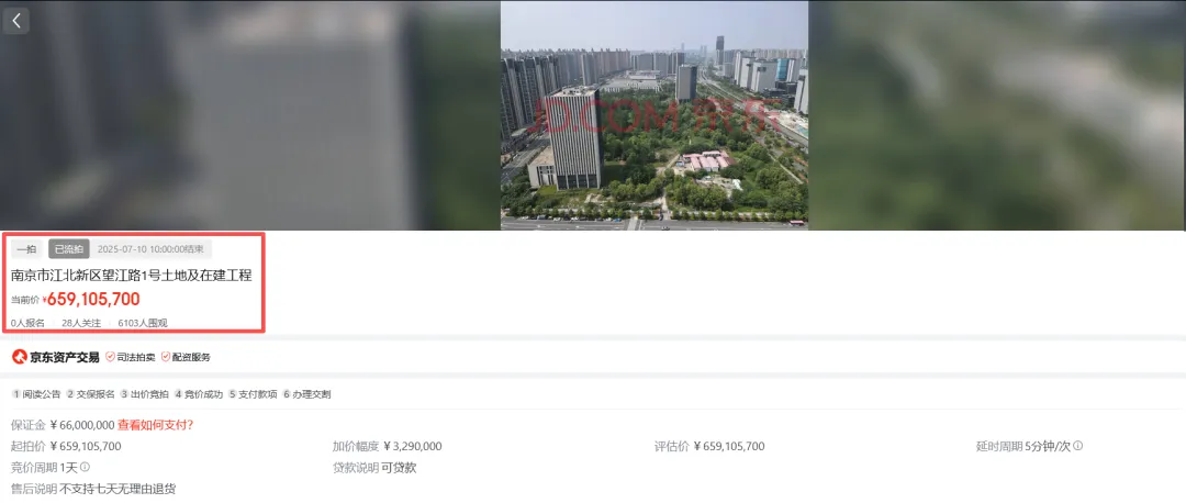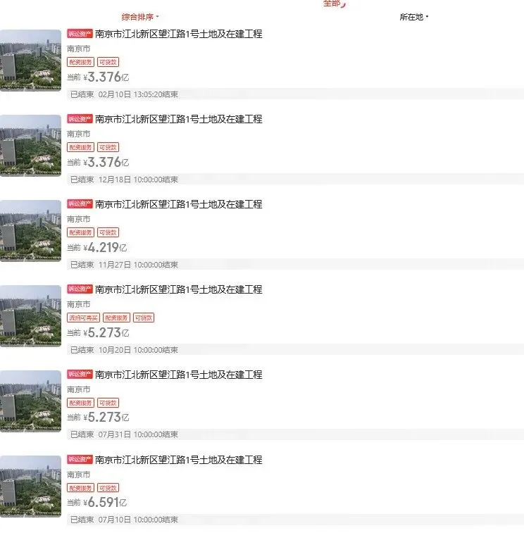 2025年7月,望江路1号土地及在建工程,也就是项目剩余资产首次打包法拍。