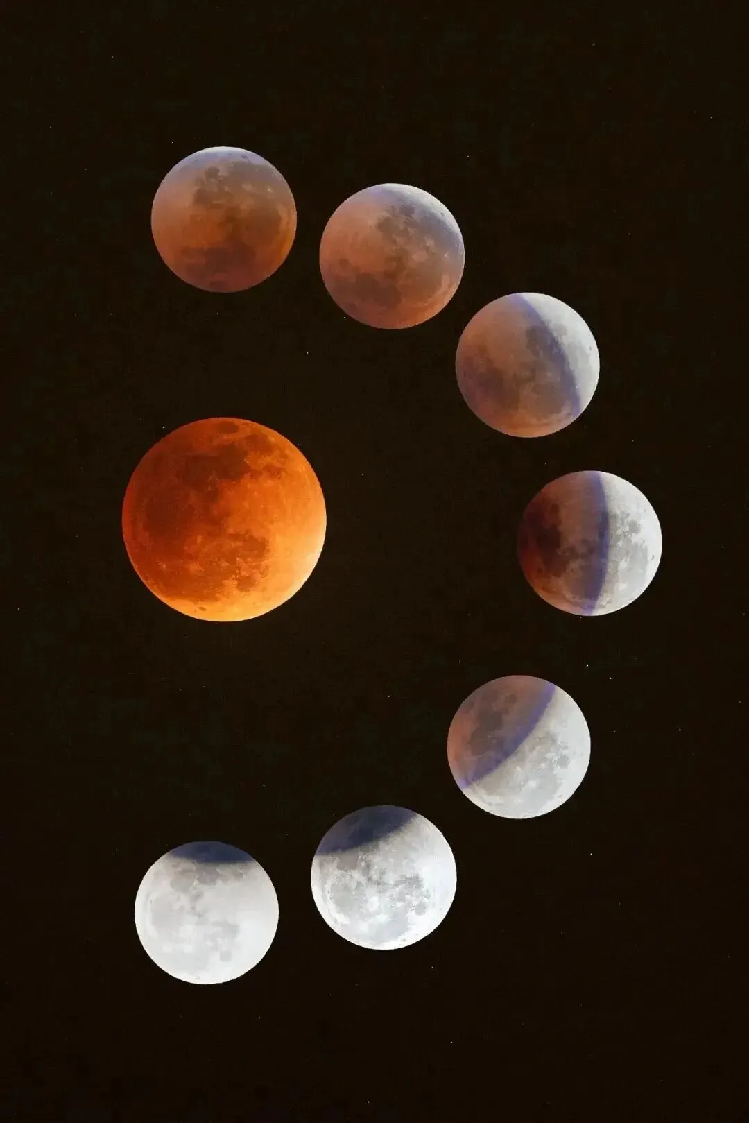 此次月全食的具体时刻(北京时间)为: