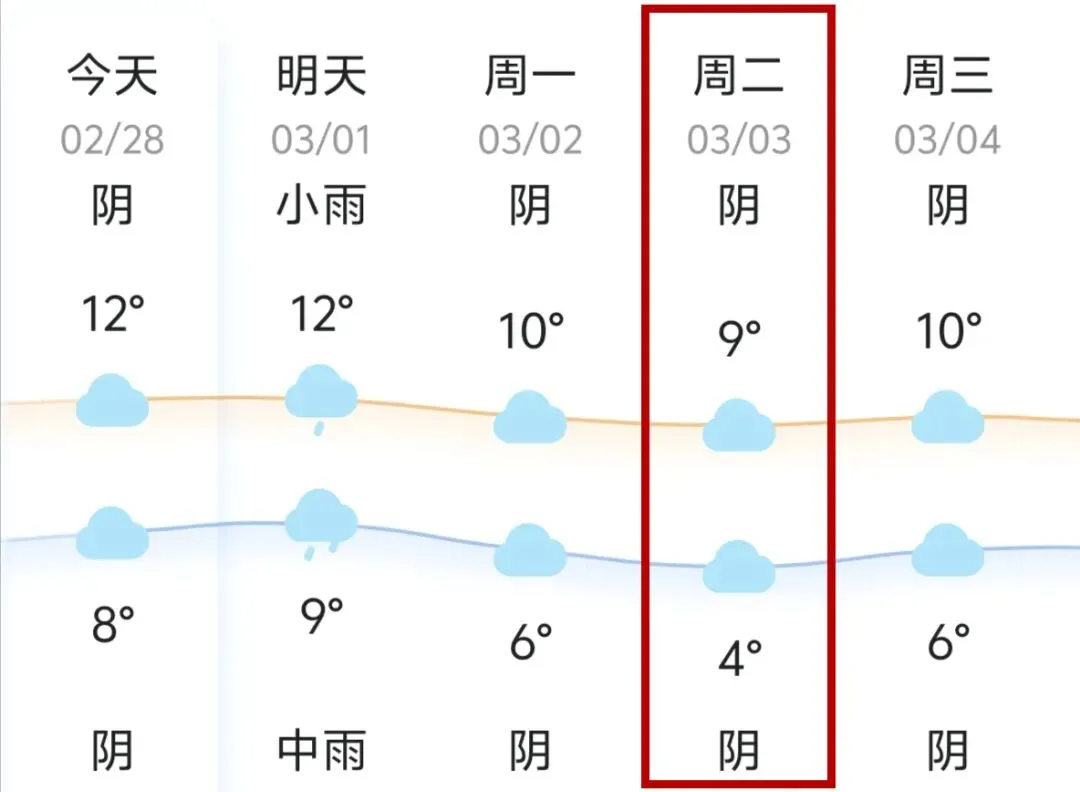 3月1日最高气温: 12℃到13℃