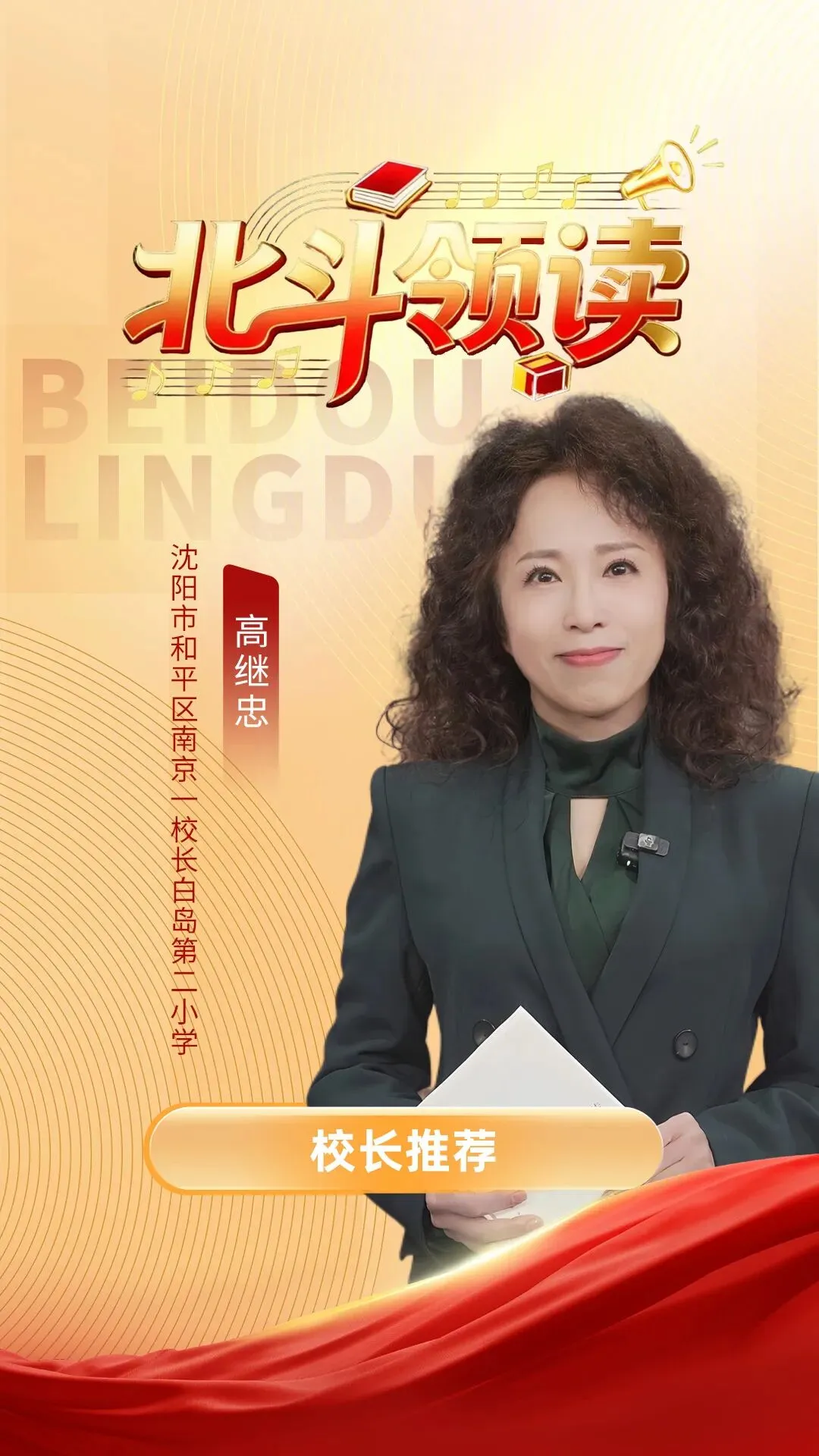 书香致远,墨卷至恒。阅读,是一场穿越时空的对话,是一次滋养心灵的修行。近期,辽宁省优秀阅读推广人,南京一校长白岛第二小学党支部书记、校长高继忠受邀至辽宁广播电视台北斗融媒栏目,在“北斗领读 书香辽宁”主题节目中,用声音诠释经典,以情怀传递书香,在全省观众面前展现了南京一校长白岛第二小学的教育风采与文化担当。